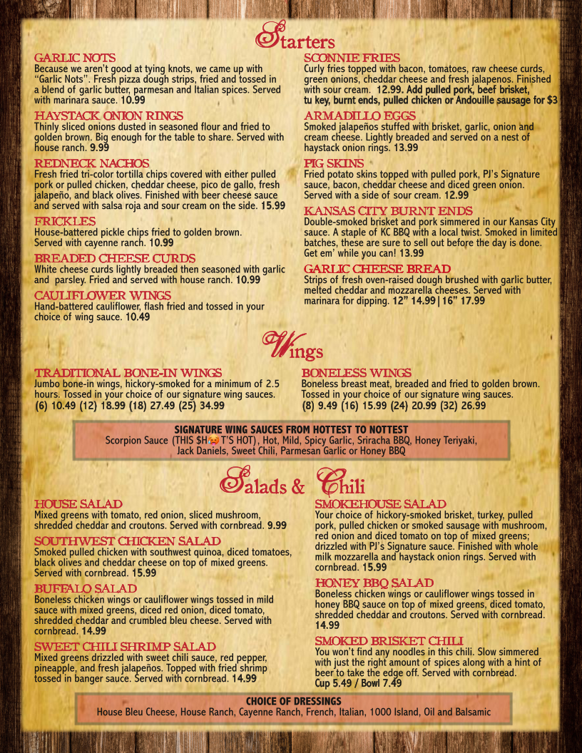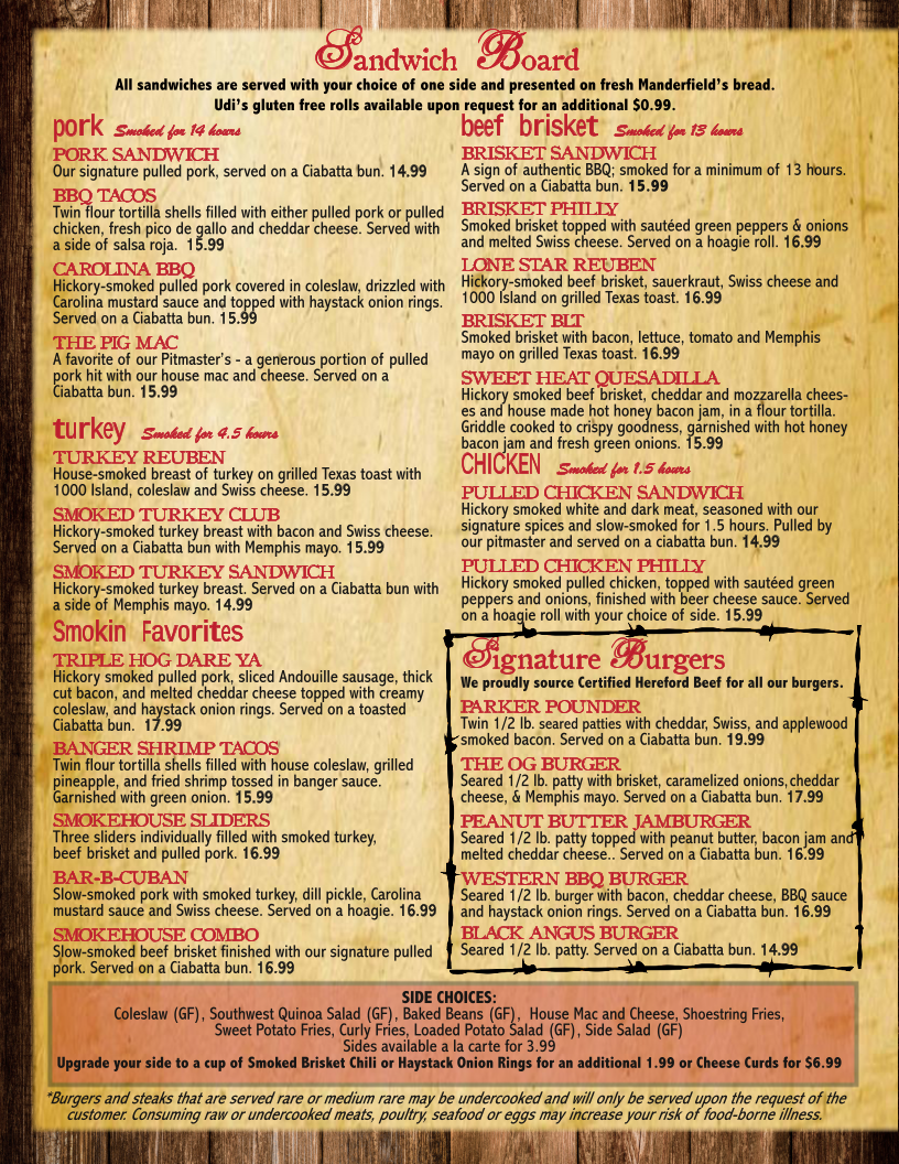 The moment you step into Parker John’s, the inviting aroma of hickory-smoked meats envelops you, heightening your anticipation for what's to come. Their menu is a testament to the art of BBQ, featuring a variety of dishes that promise to satisfy any craving. Be sure to try their traditional bone-in wings, which are lovingly smoked for a minimum of 2.5 hours and come tossed in your choice of signature sauces—perfectly crispy and flavorful, they have become a local favorite.