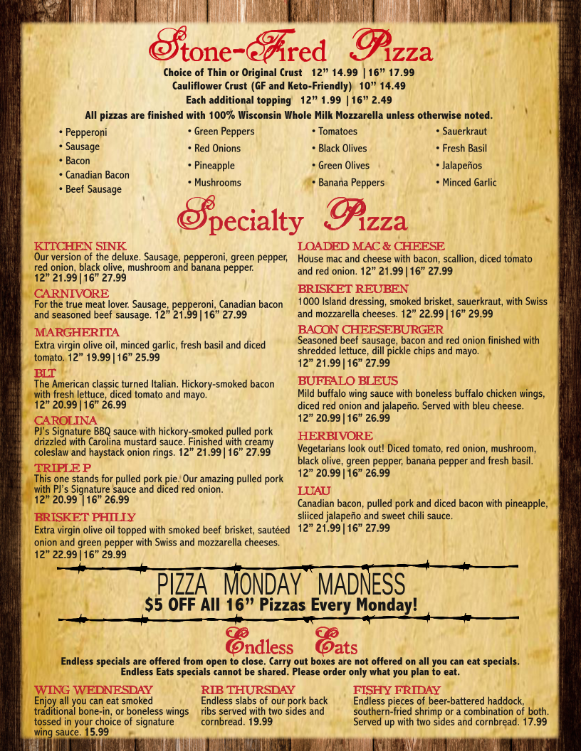 Call them at +1 920-453-0299 to make a reservation or inquire about their menu. Parker John’s BBQ & Pizza is waiting to serve you a feast you won’t soon forget!